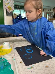 Back in the classroom, Robin Class watched a time-lapse video showing how frost forms, supporting their Understanding of the World learning. They then created their own frosty-inspired artwork, exploring texture and pattern.